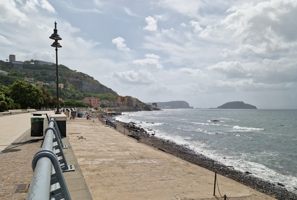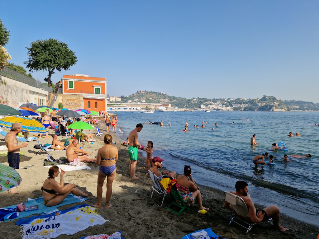 Якщо виникне бажання, то ви можете поїхати на інший пляж, він невеликий і кам’янистий. Навіть не кожен мешканець Поццуолі знає про нього. Пляж розташований у Баколі, на віллі Ферретті, яка раніше належала до одного з мафіозних угрупувань (я не відкрию таємницю, кажучи, що Неаполь славиться не тільки своєю кухнею, а й великою кількістю так званих Каммор – злочинних структур). Відвідування пляжу та паркування є безкоштовними, якщо ви замовите в барі хоча б філіжанку кави. У той день, коли ми поїхали в Баколі, ми вирішили в барі і поснідати. Я помітила багатьох людей, які зробили теж саме. Виявляється, вони приїхали з півночі Італії, орендували квартири, бо так дешевше, і разом з сім’єю відпочивають в невеличких містечках на узбережжі Неаполітанської затоки. Особливо, цього літа, коли Ломбардію накрили сильні зливи та град, розміром з долоню. Тим паче, що дорога від Поццуолі до Баколі зайняла всьго 20 хвилин.