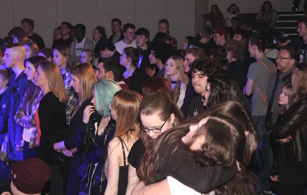 Bereits zu Beginn des Festivals am Samstagnachmittag zeigte sich das Schulzentrum Vogelsang gut besucht. Die jeweiligen musikalischen Vorträge im PZ wussten die Rockfans zu begeistern. Während auf den Stufen des Saals viele Neugierige den 25 Bands lauschten, wurde vor der Bühne getanzt und gepogt. Im Pädagogischen Zentrum war dafür genügend Platz vorhanden!