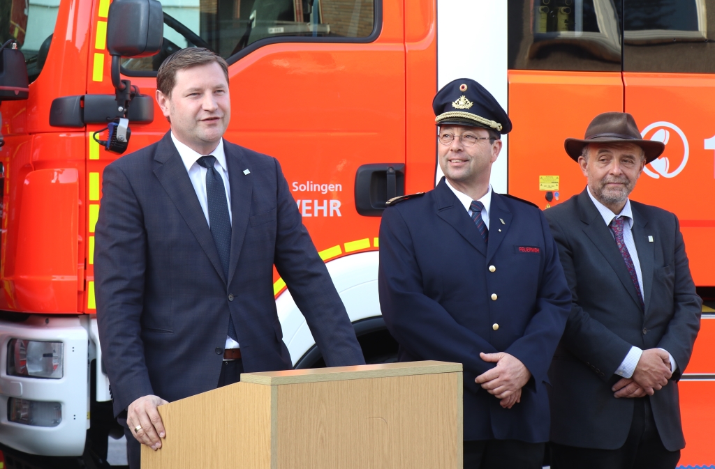 Die Aufgaben wurden von den Prüflingen alle gemeistert. Aus diesem Grundlehrgang kommt der Großteil übrigens aus der Region oder sogar direkt aus Solingen. „Nur ein Kamerad kommt von etwas weiter aus Bielefeld. Wir hoffen, dass wir ihn hierbehalten können“, sagte Polnik. Gemeinsam mit Dezernent Jan Welzel und Feuerwehrchef Dr. Ottmar Müller überreichte Oberbürgermeister Tim Kurzbach den neuen Berufsfeuerwehrmännern ihre Ernennungskunden sowie die brandneuen Schulterklappen.