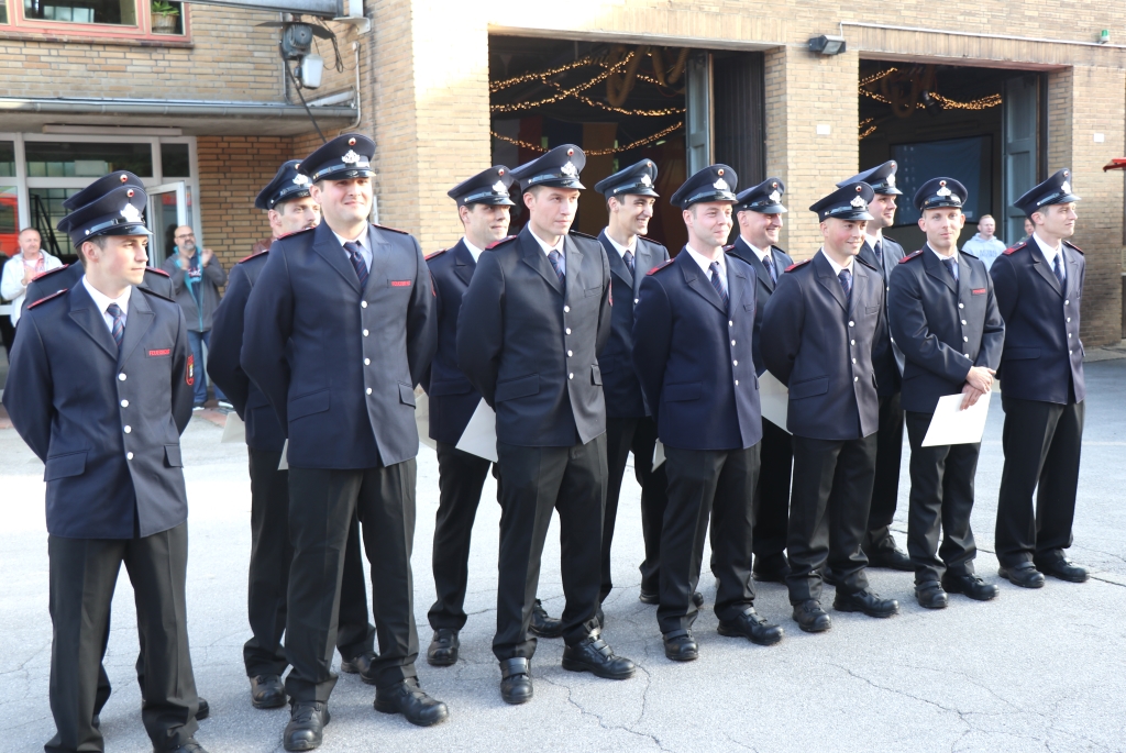 SOLINGEN (bgl) – Für Oberbürgermeister Tim Kurzbach sind die 14 jungen Männer, die jetzt auf dem Hof der Feuer- und Rettungswache III im Rahmen einer Feierstunde zu Brandmeistern ernannt wurden, schon jetzt „echte Helden“. Und in der Tat, geleistet haben die 14 neuen Angehörigen der Solinger Berufsfeuerwehr bereits einiges. Nicht nur, dass sie sich im strengen Auswahl- und Bewerbungsverfahren durchgesetzt haben. Auch nach 18-monatiger Ausbildungszeit im Grundlehrgang an der Feuerwehrschule der Solinger Feuerwehr haben sie jetzt erfolgreich ihre Prüfung abgelegt. „Das ist etwas, worauf man wirklich stolz sein kann“, lobte OB Kurzbach.