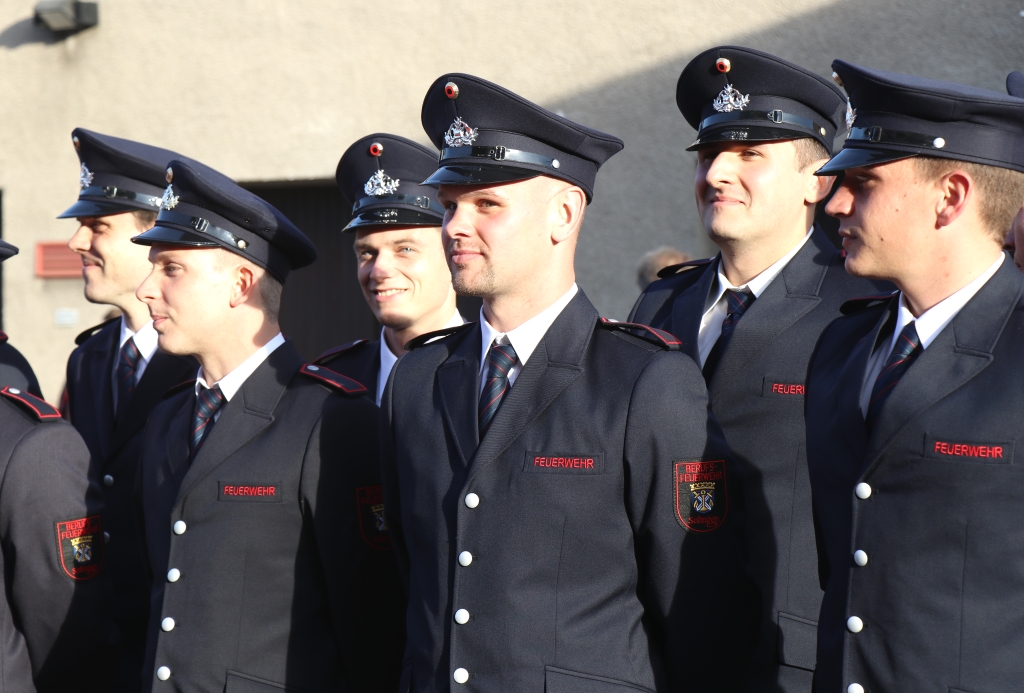 SOLINGEN (bgl) – Für Oberbürgermeister Tim Kurzbach sind die 14 jungen Männer, die jetzt auf dem Hof der Feuer- und Rettungswache III im Rahmen einer Feierstunde zu Brandmeistern ernannt wurden, schon jetzt „echte Helden“. Und in der Tat, geleistet haben die 14 neuen Angehörigen der Solinger Berufsfeuerwehr bereits einiges. Nicht nur, dass sie sich im strengen Auswahl- und Bewerbungsverfahren durchgesetzt haben. Auch nach 18-monatiger Ausbildungszeit im Grundlehrgang an der Feuerwehrschule der Solinger Feuerwehr haben sie jetzt erfolgreich ihre Prüfung abgelegt. „Das ist etwas, worauf man wirklich stolz sein kann“, lobte OB Kurzbach.