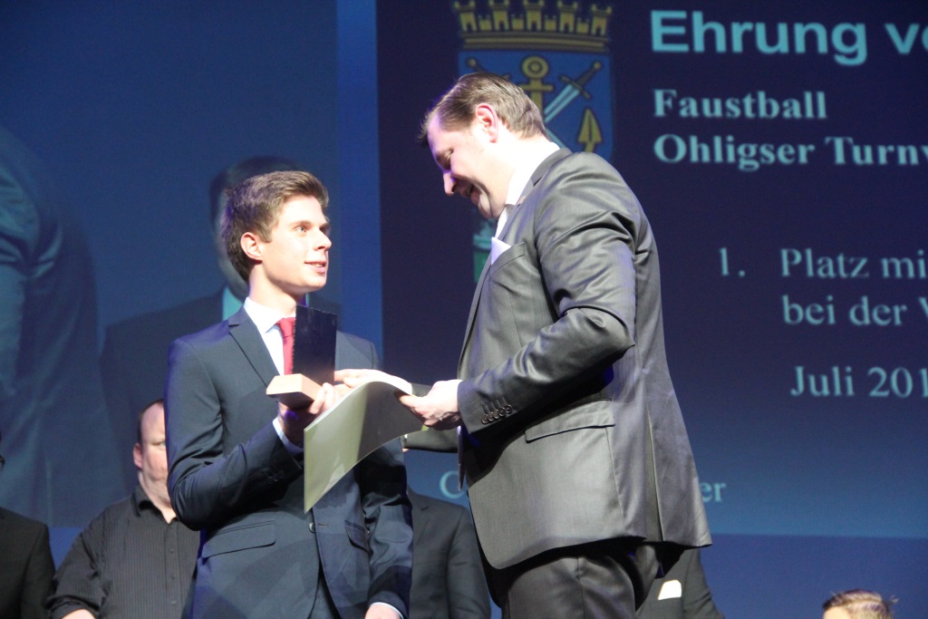 Oberbürgermeister Tim Kurzbach ehrte zahlreiche Solinger Sportlerinnen und Sportler, die in ihren Disziplinen Erfolge feiern konnten. Auch ganze Mannschaften kamen zu ihm auf die Bühne, um die begehrte Auszeichnung entgegenzunehmen. Sportlerin, Sportler und Mannschaft des Jahres 2016 wurden Leichtathletin Inga Hundeborn, Handballer Viktor Szilagyi und der Eishockey-Nachwuchs des EC Bergisch Land. Sie wurden vom scheidenden Sportbund-Präsidenten Hartmut „Hacki“ Lemmer und von Stefan Kob, Chefredakteur des Solinger Tageblatts, ausgezeichnet.