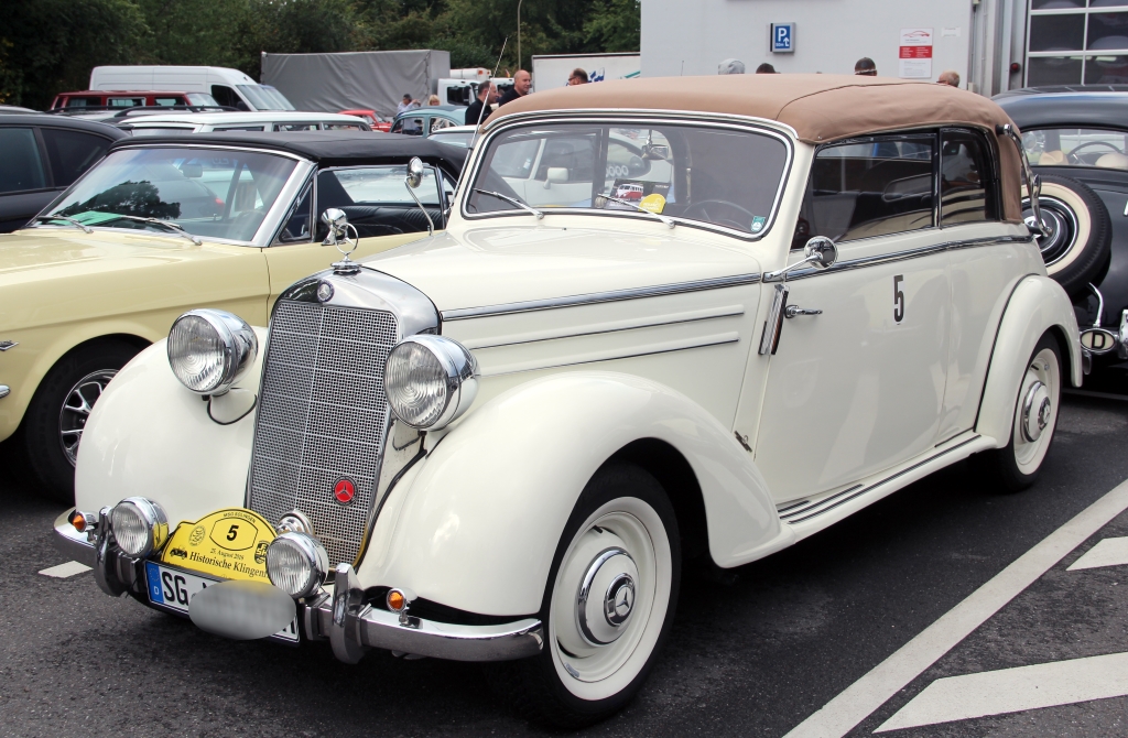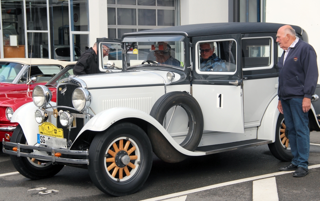 In Solingen gebe es mindestens rund 1.200 Oldtimer, rechnete Jürgen Flender vor. Ein durchaus beliebtes Hobby also. Gerne nutzen die stolzen Besitzer Veranstaltungen wie die Klingenfahrt, um ihre Schätzchen zu fahren – und zu zeigen. Sehr zur Freude der vielen Autofans, die wie am Samstag zu Mercedes pilgerten, um sich die Oldtimer einmal ganz genau anzuschauen und erklären zu lassen. Übrigens: Das älteste Fahrzeug der 22. Historischen Klingenfahrt war ein Dodge DA aus dem Jahre 1929.
