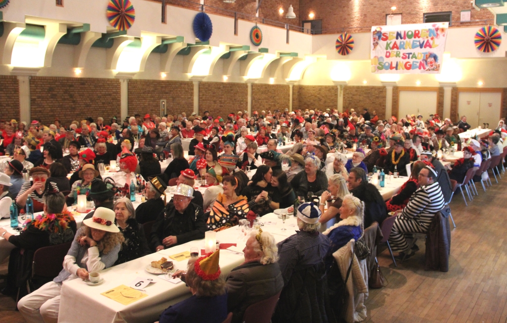 SOLINGEN (bgl) – Wer glaubt, dass ältere Menschen keinen Karneval feiern und wenn doch, dann eher ganz gediegen bei Kaffee und Kuchen, der wurde am Samstagnachmittag in der Ohligser Festhalle wieder einmal eines besseren belehrt. Über 300 ältere Jecke kamen zum diesjährigen Seniorenkarneval der Stadt Solingen und ließen es so richtig krachen.