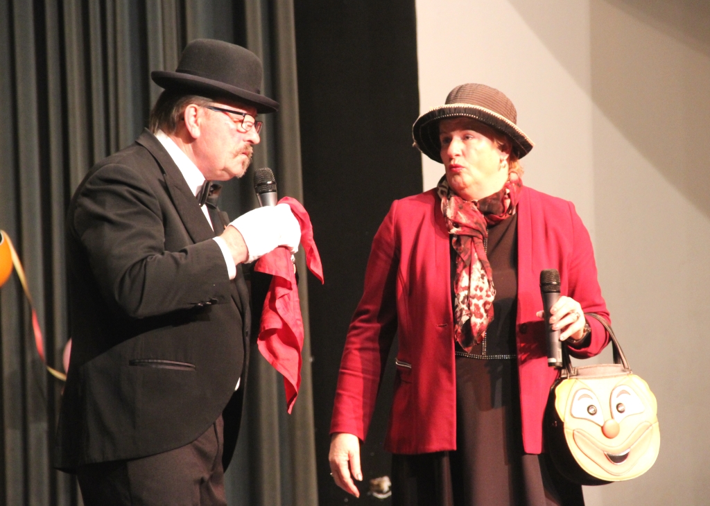Während das Seniorenbüro der Stadt Solingen um die quirlige Daniela Dannies-Kögel, in der vergangenen Session selbst Solinger Karnevalsprinzessin, die Veranstaltung ausrichtete, stellte die Prinzengarde das Programm zusammen, durch das routiniert-launig Präsident Joachim Junker führte. Mit dem „Beckendorfer Knallköpp“ stand zur Ouvertüre ein Duo auf der Bühne, das sich der Lacher der gut gelaunten Karnevalisten sicher sein konnte.