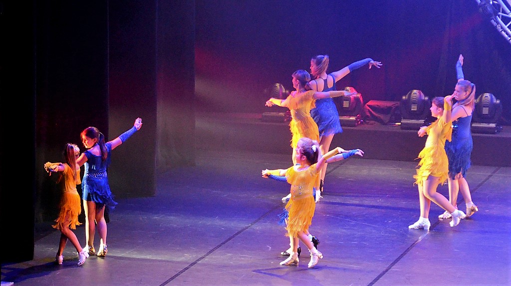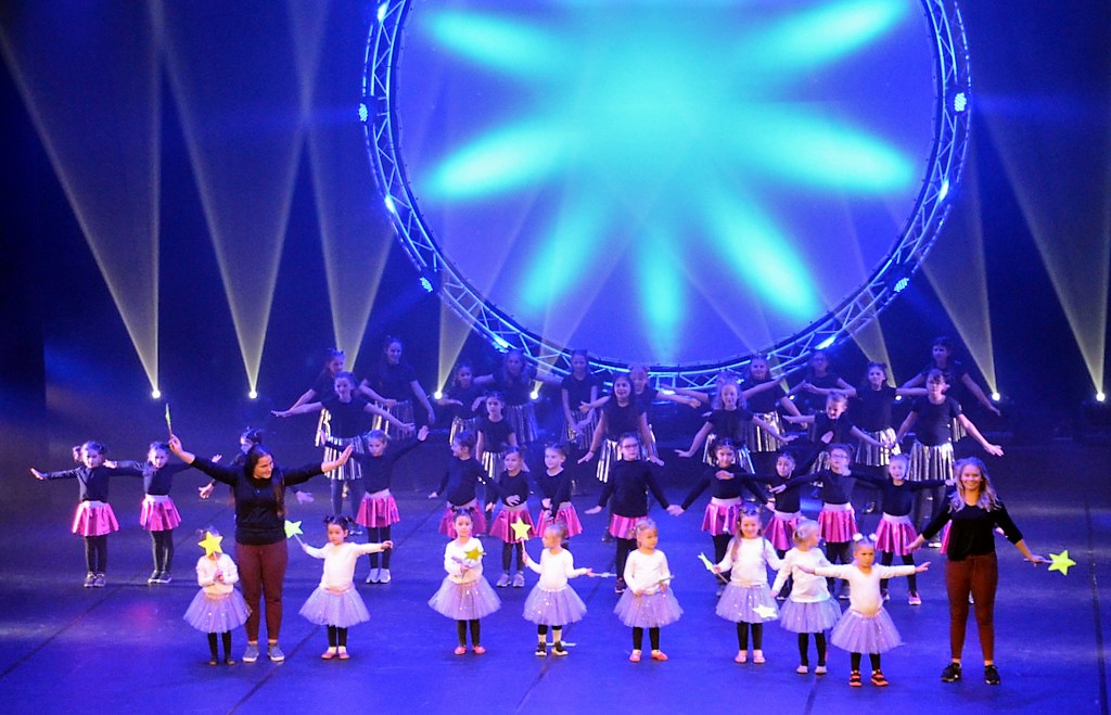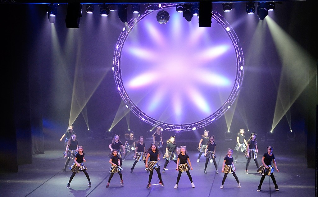 Im Saal sorgen derweil die vielen Darbietungen für eine grandiose Stimmung. Tänzer wirbeln in glitzernden Kostümen über die Bühne, begeistern die Zuschauer mit vielfältigen Choreografien. Die hervorragende Bühnenbeleuchtung setzt alles in die richtige Szene.