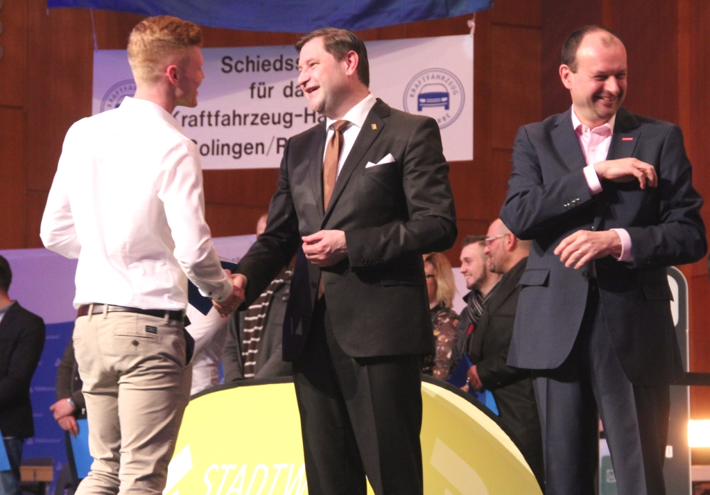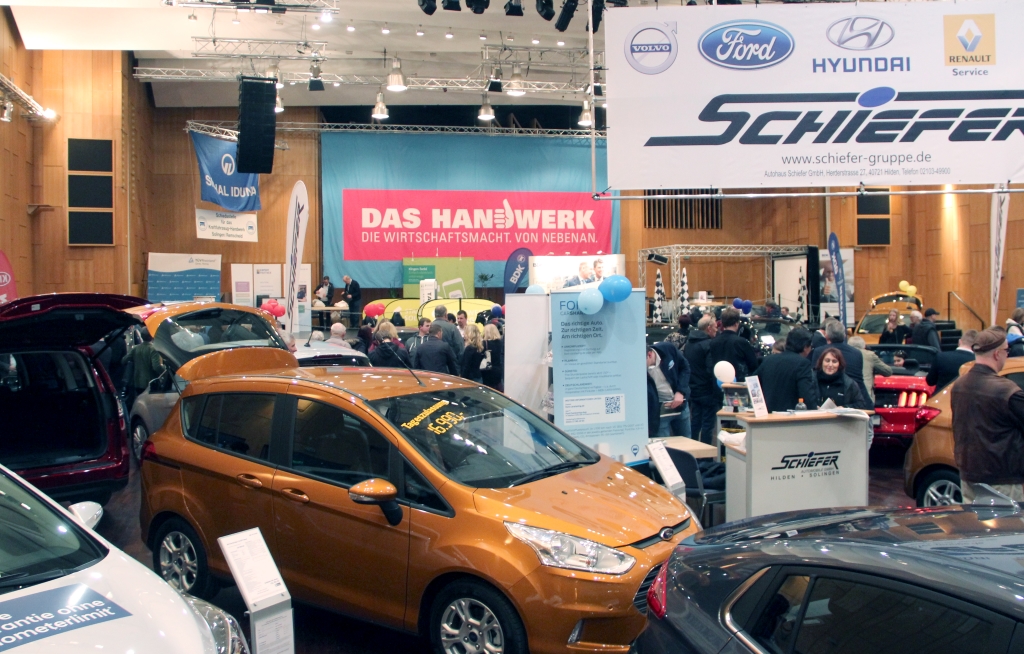 SOLINGEN (mh) – Die Innung des Kraftfahrzeughandwerks Solingen hatte gemeinsam mit Solingens Autohändlern und zahlreichen anderen Ausstellern ein buntes Programm auf die Beine gestellt. Konnte man auch nicht an Spitzenzahlen anknüpfen, so waren aber doch rund 11.000 Besucher an diesem Wochenende ins Theater gekommen, um sich zu informieren, neue Modelle zu begutachten und außerdem an den diversen Angeboten, Gewinnspielen und Tests teilzunehmen. Die Lehrstellenbörse war für Jugendliche eine tolle Möglichkeit, sich über Kfz-Ausbildungsberufe zu informieren. Die Stadtwerke erläuterten ihre Sonderverträge für Besitzer von Elektrofahrzeugen.