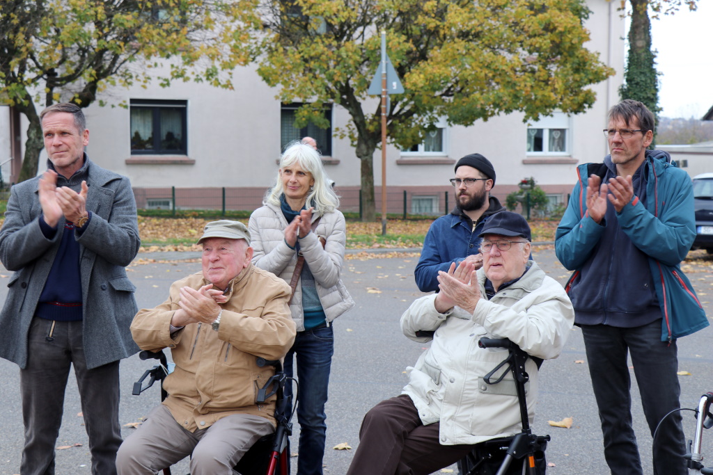 „Diese Skulptur ist herausragend und sie ist ja nicht etwas, was man so einfach irgendwo kaufen kann. Es ist ganz hervorragend, wie die einzelnen Elemente ineinander verzahnt sind, ganz so wie die Siedlung auch. Und als Gesamtheit in die Höhe ragen“, lobte Oberbürgermeister Tim Kurzbach. Am Sockel der Skulptur ist eine Tafel angebracht, die auf das Jubiläum und die Initiatoren hinweist.