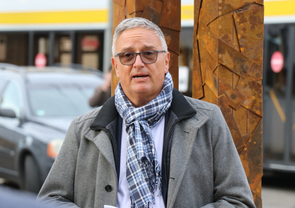 „Die Skulptur besteht aus zwei Linien, die aber zusammengehören. Wir wollen damit die Gemeinsamkeit und den Zusammenhalt hier in der Hasseldelle zum Ausdruck bringen“, machte Peter Harbecke deutlich. Rund 2.400 Menschen aus mehr als 50 Nationen leben in der Hasseldelle. 196 Wohneinheiten bietet der Spar- und Bauverein im Viertel an, weitere 450 das Immobilienunternehmen Grand City Property.