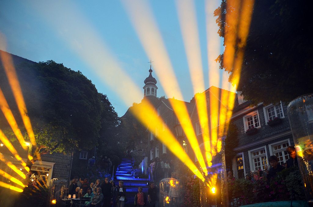 SOLINGEN (mh) – Mit den sichtbar gewordenen Klängen von Pink Floyd und Tschaikowskys Schwanensee bot sich den unzähligen Besuchern beim Gräfrather Lichterzauber ein unvergessliches Erlebnis. Im gesamten Ortskern gab es Licht, Musik und Kunst. Und auch das Wetter spielte mit.