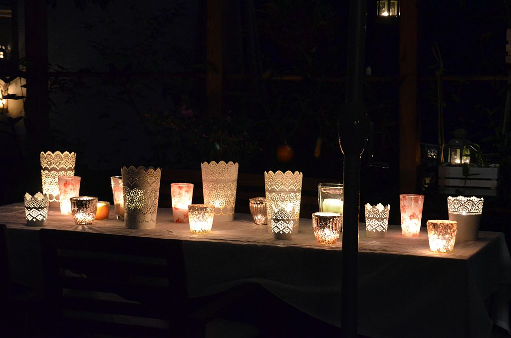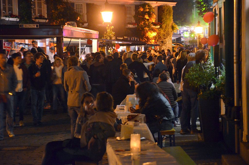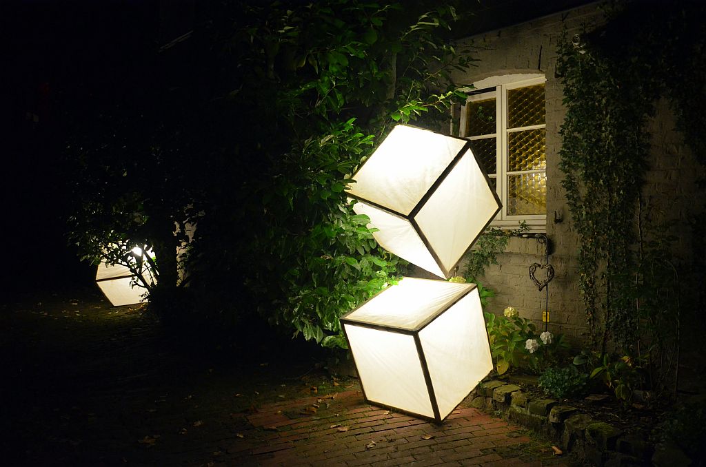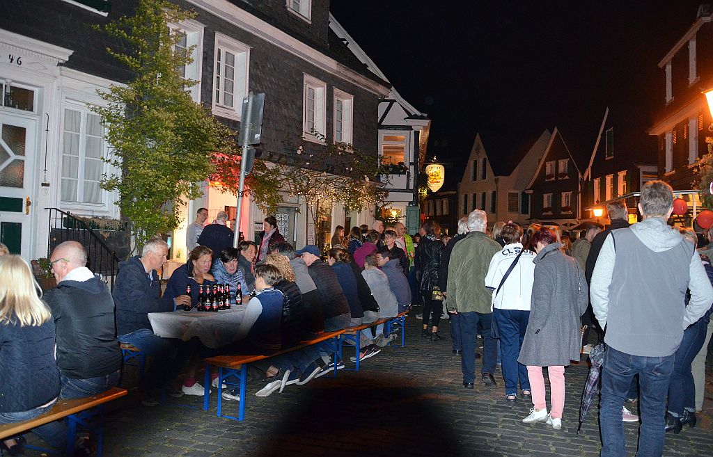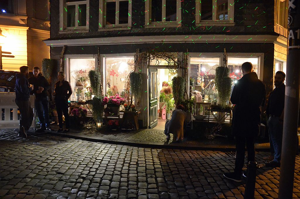 Die Gastronomen hatten lange Tischreihen draußen aufgebaut, die gerne angenommen wurden. Drinnen und draußen war alles voll belegt. Auch in den Höfen drängten sich Interessierte, um Kunst zu bestaunen und Musik zu genießen. Lichtinstallationen sorgten neben unzähligen Kerzen für originelle und stimmungsvolle Beleuchtung und farbige Glanzlichter. Viele Besucher nutzten die Gelegenheit zum Shoppen. Sabine Danielzig von Brief & Siegel hatte alle Hände voll zu tun. Sie fasste den Abend kurz zusammen: „Toller Abend, viele nette Leute, Stimmung super, wahnsinnig viel zu tun.“