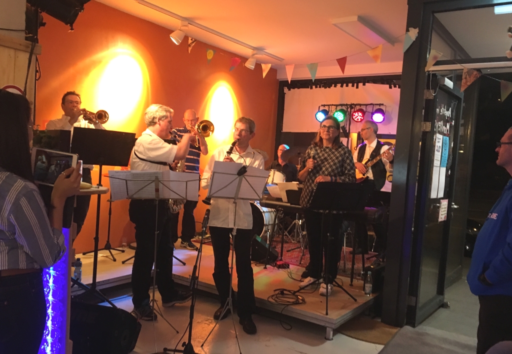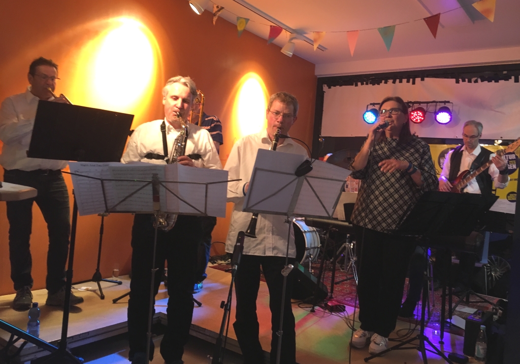 Auf einer kleinen musikalischen Bühne am Bülowplatz zog Pope’s Project alle Register des musikalischen Könnens. Wer sich die Wartezeiten bis zur Busankunft vertreiben wollte, hatte hier eine wunderbare Gelegenheit. Andere blieben länger, um die Musik unter fast freiem Himmel zu genießen. Die Zuhörer sangen oder klatschen mit. Der Platz vor der Bühne wurde zur Disco, denn manchem fuhr der powervolle Rhythmus in die Beine.