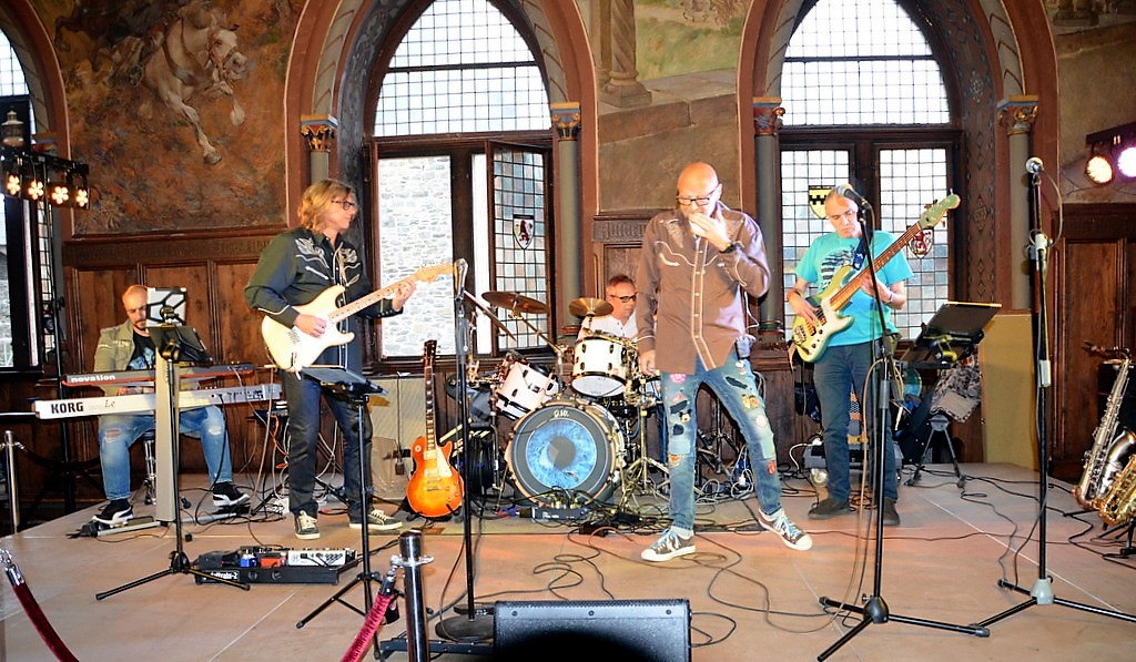 Der Rittersaal hallte wider von Funk-, Soul- und Rockklängen. Saxofonist Sir Waldo Weathers wurde abgelöst von Sänger David Hanselmann. Beide sorgten beim Publikum für Begeisterung.
