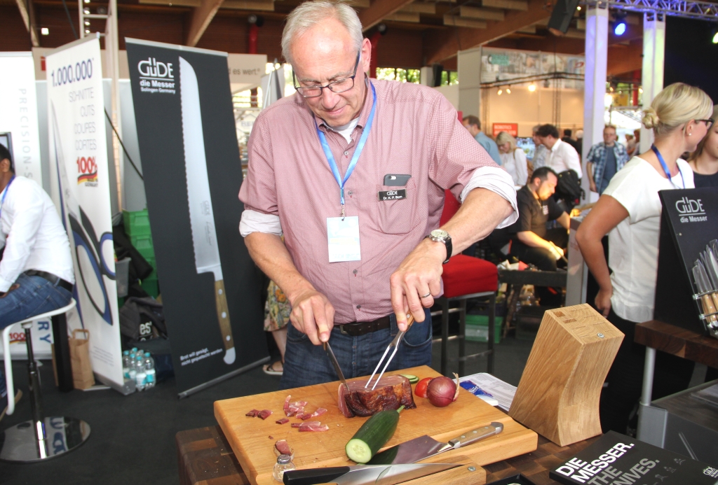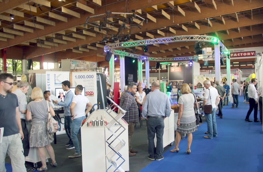 Am Freitagabend kam man beim lockeren Ausstellerabend im Catering-Bereich ins Gespräch. Die Wirtschaftsförderung hatte zu diesem Zweck eine eigene Währung rausgebracht. Bier und Würstchen mussten mit „Solingeld“ bezahlt werden. Der Wechselkurs zum Euro betrug zum Glück 1:1. Während in der Halle geschwitzt wurde, wehte am Haupteingang ein frisches Windchen.