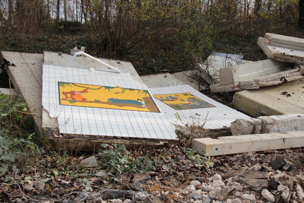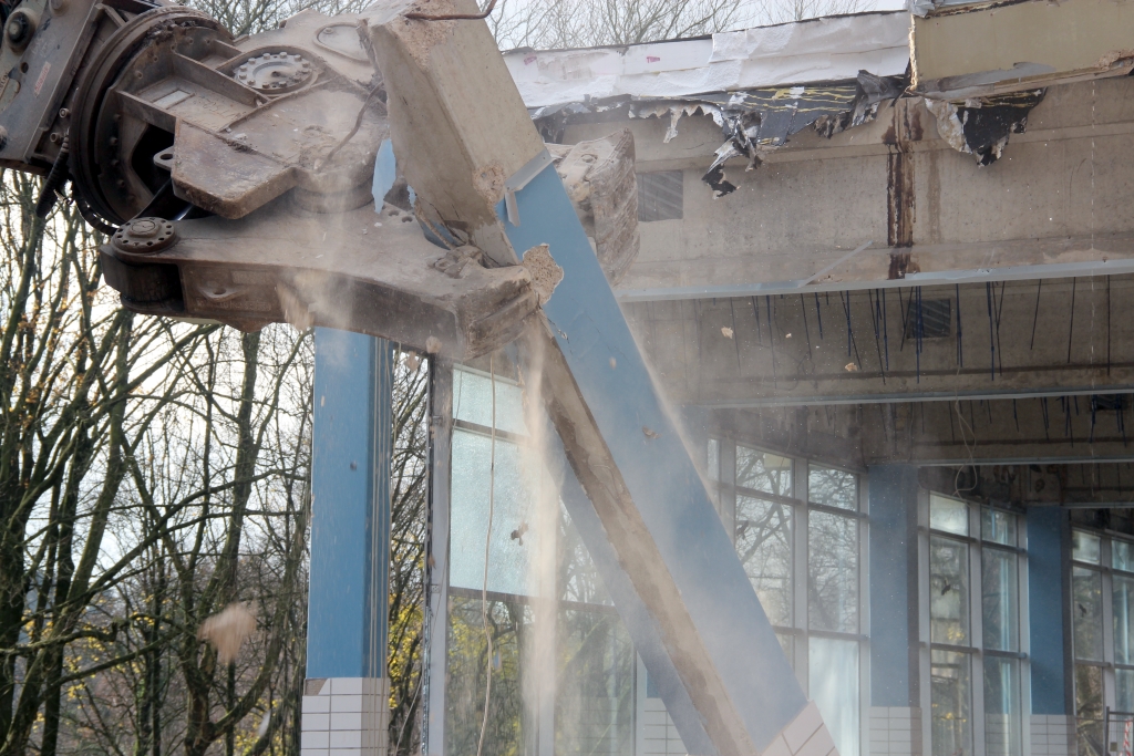 Abrissbagger rücken dem Hallenbad Vogelsang zu Leibe