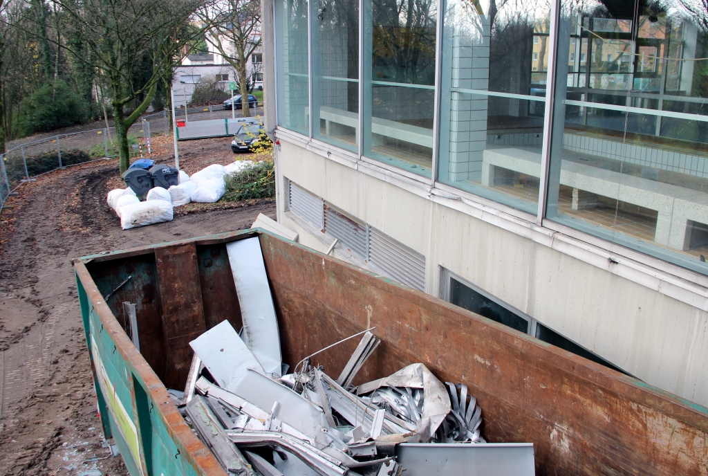 „Rausgenommen haben wir inzwischen alles, was die Decken angeht“, erklärte Carsten Grotheer, Polier der Abrissfirma Bremer Sandhandel Gesellschaft (BSG). Dazu gehören die Rasterdecken aus Aluminium ebenso, wie Unmengen an Gipsplatten. „Im Gebäude befindet sich nur noch Material, das wir wiederverwenden können“, so Gutheer weiter. Metalle finden selbstverständlich eine neue Bestimmung.