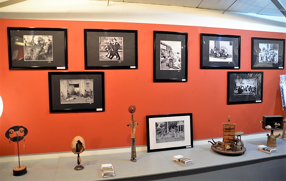 Inmitten der Kunstwerke stand ein handgesticktes Bild mit Peter Amanns Konterfei. Das Motiv stammte von der Fotografie Astrid Kirschey. Gestickt hatte es Künstlerin Bettina Stöhr. (Foto: © Martina Hörle)