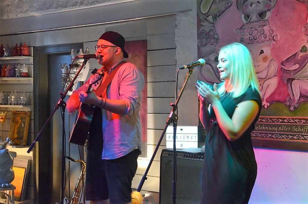 Das Duo performt und interpretiert auf seine ganz individuelle Weise. „Wir haben nur Stücke im Repertoire, die uns ansprechen“, erklärt Fuhrmann. Daher findet man in den Darbietungen der beiden nicht unbedingt das, was gerade total in den Charts angesagt ist. „Vieles ist von Philipp Poisel oder auch Gregor Meyle“, so die Sängerin.