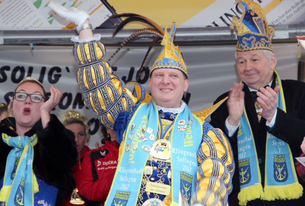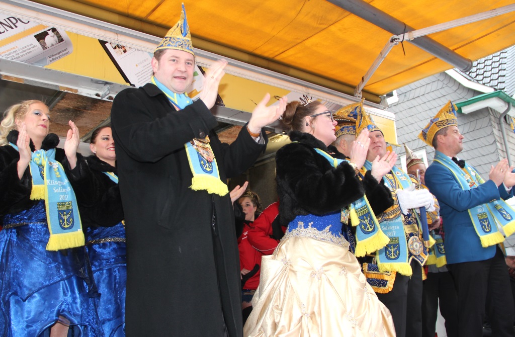 Oberbürgermeister überreichte dem Solinger Prinzenpaar den Schlüssel zum Rthaus. Damit wurde der Solinger Straßenkarneval offiziell eingeläutet. (Foto: © B. Glumm)