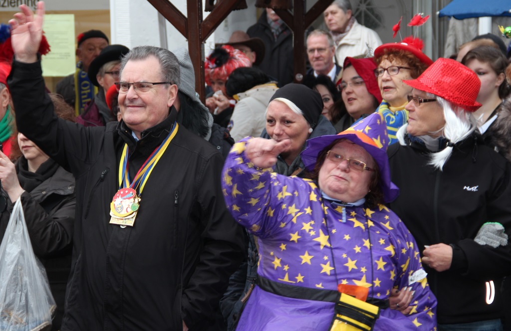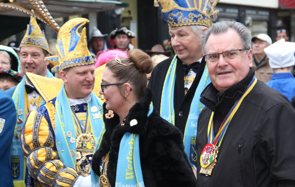 Willy Weber, ganz die alte Schule, hatte aber auch eine gehörige Portion Charme mit im Gepäck, als er sich an die Möhnen wandte: „Ihr Möhnen seid das Tafelsilber der Stadt Solingen.“ Und so konnte sich Willy Weber, der gewohnt routiniert durch das Programm führte, nicht nur zahlreicher Lacher, sondern auch der Sympathien der Damen sicher sein. Schließlich ging es ja genau um sie, als am Altweiberdonnerstag um 11.11 Uhr im Walder Rundling der Karneval die Regentschaft über die Stadt Solingen übernahm.