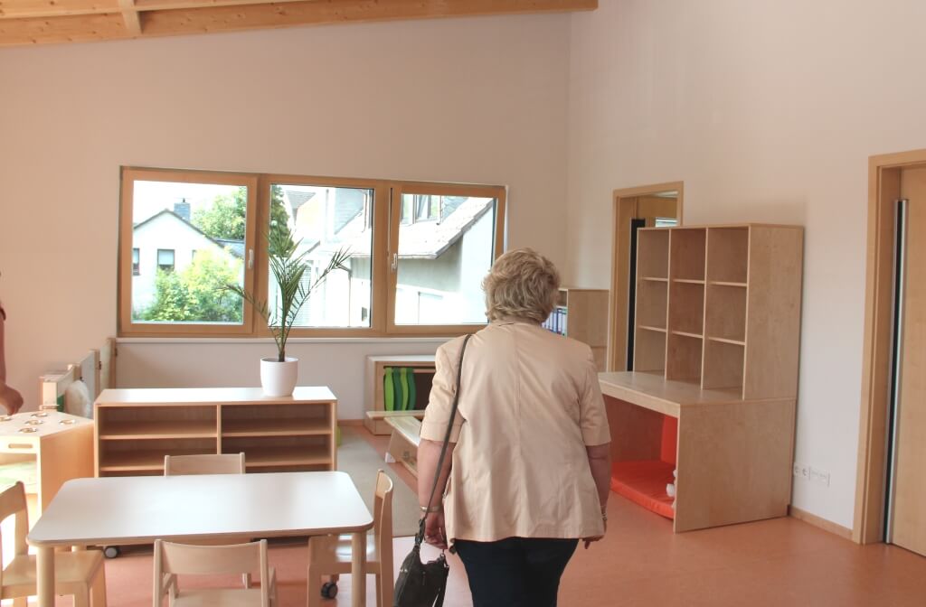 „Wir waren zunächst zwei Gruppen und sind jetzt seit Anfang August vier volle Gruppen in der Kita. Wir waren mit einer Vorläufergruppe vorher im Schulgebäude Rennpatt untergebracht“, erinnerte sich Sabine Claas, Leiterin der Kia „Opderhüh“, am Rande der Eröffnungsfeier am Samstag. Im neuen Gebäude an der Höhscheider Straße war man mit den ersten beiden Gruppen dann bereits seit Februar untergebracht. Die neue Kita präsentiert sich modern mit geräumigen und lichtdurchfluteten Zimmern. Gleichzeitig lädt ein großzügiger Außenbereich mit Spielgeräten zum Toben ein. „Es ist wunderschön, wir haben ein wunderbares Gebäude. Wir sind sehr froh, dass wir hier sein können“, freute sich Sabine Claas.