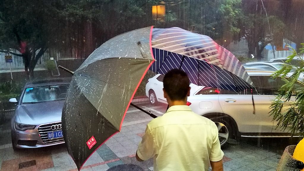 Vorgesehen war die Weiterreise nach Hongkong. Doch kurzfristig gab es eine kleine Planänderung. Mit mehreren Stunden Verspätung landete Andrea Daun endlich in Shenzhen. „Ein futuristisch anmutender Flughafen“, staunte sie. Hier wurde sie wiederum überaus herzlich empfangen. Das Wetter war allerdings nicht wirklich gastfreundlich. „Es war wie ein Weltuntergang zwischen all den Hochhäusern“, beschrieb Daun. Da halten auch zwei Schirme nicht. In Sekundenschnelle war alles durchweicht.