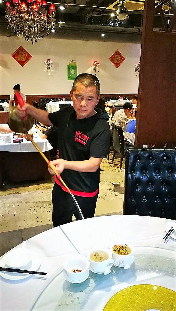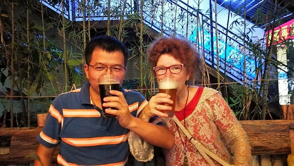 Zum Abschiedsessen ging die Gruppe abends in ein gemütliches Bistro. Deutsches Weizenbier mitten in der Fußgängerzone – damit rechnet man bei einem Besuch in China nicht unbedingt. „Es war eine herrliche Kulisse für unsere Verabschiedung.“ Auch die Teetrinker kamen auf ihre Kosten. Während des Abends ging der Kellner immer wieder herum und goss mit einer langen Kelle gekonnt das heiße Wasser in die Tassen. Nichts ging daneben.