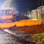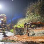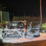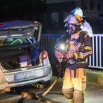 Ein weiterer größerer Einsatz ereignete sich an der Walder Straße. Kurios: Ein Paar genoss in einem E-PKW die gute Aussicht an einer abgelegenen Stelle und feuerten dort auch Feuerwerk ab. Nach bisherigen Erkenntnissen entzündeten die beiden eine Feuerwerksbatterie an der geöffneten Kofferraumklappe, die Batterie kippte jedoch um und entzündete in wenigen Momenten den kompletten PKW, der vollständig ausbrannte. Die Lösch- und Bergungsarbeiten gestalteten sich aufgrund des Elektroantriebs dort besonders zeitintensiv.
