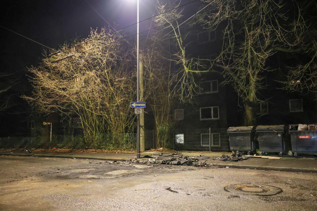 Neben zahlreichen Container- und Mülleimerbränden mussten Einsatzkräfte immer wieder brennende Feuerwerksreste auf Gehwegen ablöschen. An der Hasselstraße kam es zu mehreren mutmaßlich vorsätzlichen Brandstiftungen: Müllcontainer wurden angezündet und als Straßensperren auf die Fahrbahn gestellt. Zudem gerieten dort Gegenstände auf einem Balkon durch fehlgeleitete Feuerwerkskörper in Brand.