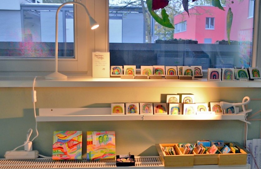 Jetzt will sie erst einmal in den Güterhallen ankommen. Ein großes Eröffnungsprogramm wird es nicht geben. Die Künstlerin lädt im Rahmen der normalen Öffnungszeiten von 14 – 18 Uhr zum Schnuppern und Staunen in ihre neuen Räume ein. Jeder Besucher erhält eine kleine selbstgemalte Miniatur als Präsent.