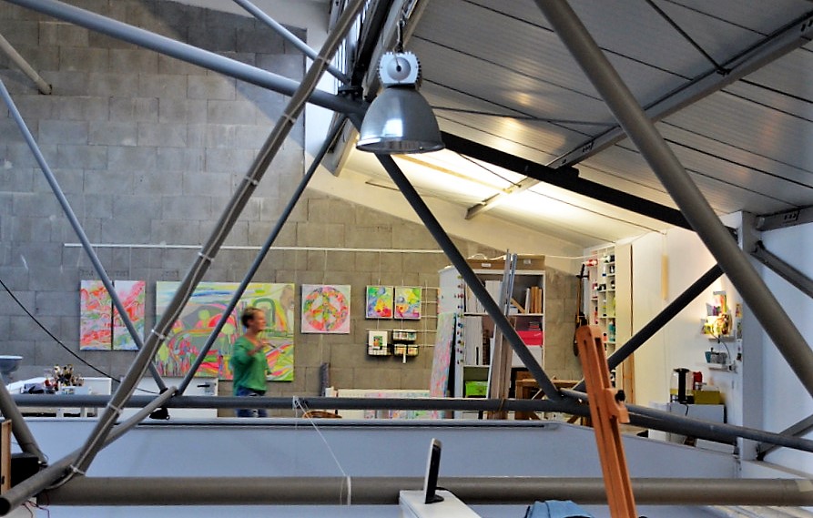 Das kleine Gräfrather Atelier war mittlerweile zu beengt geworden. Diese 19 m² hat sie jetzt gegen 38 ² und helle, lichte Räume getauscht. Ihr neues Reich teilt sich in einen Ausstellungsraum Parterre und einen Arbeitsraum im oberen Bereich. Jetzt kann sie auch große Leinwände selbst bespannen. „Dann habe ich mein Bild von A bis Z selbst hergestellt“, freut sie sich.