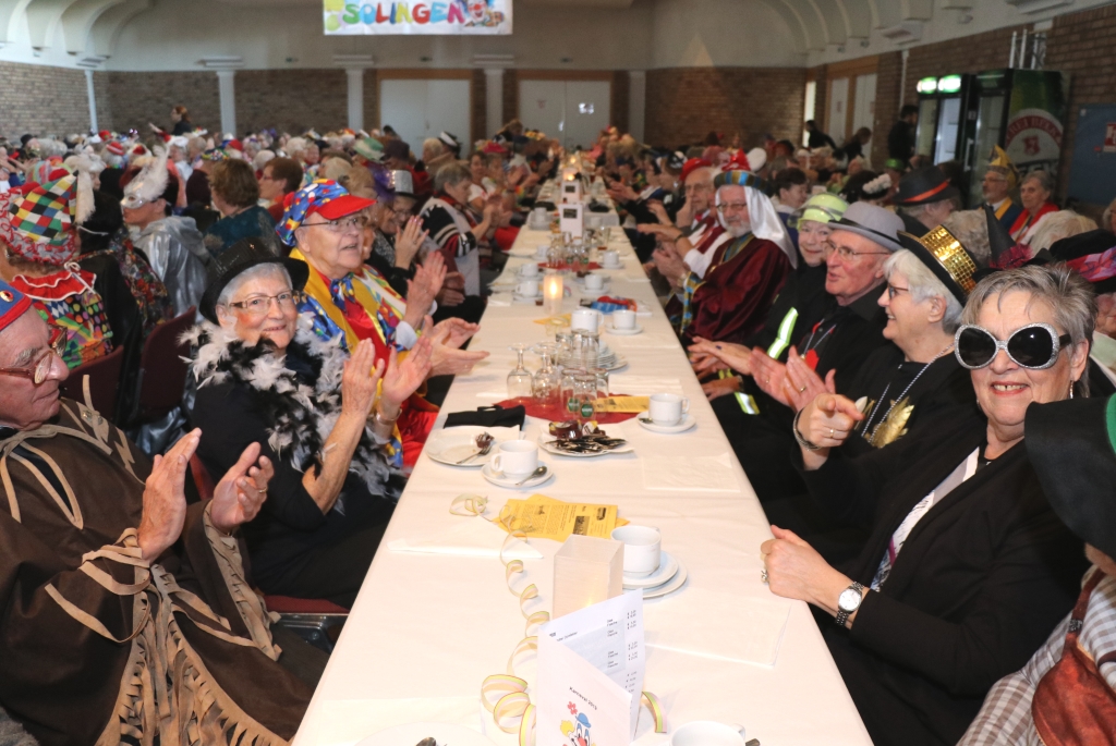 SOLINGEN (bgl) – Die Organisatoren des Solinger Karnevals können in dieser Session wieder nicht über leere Säle klagen. So war auch der Seniorenkarneval der Stadt Solingen am Samstag in der Ohligser Festhalle bestens besucht. Bei einem kunterbunten Programm feierten rund 300 Jecke gemeinsam Karneval. Es wurde geschunkelt, bei den klassischen Karnevalssongs textsicher mitgesungen und vor allen Dingen ganz viel gelacht. Die meisten der gut aufgelegten Karnevalisten kamen in teils aufwendigen Kostümen in die Ohligser Festhalle.