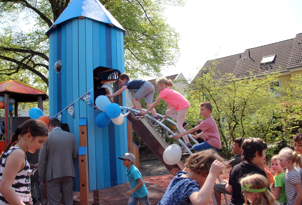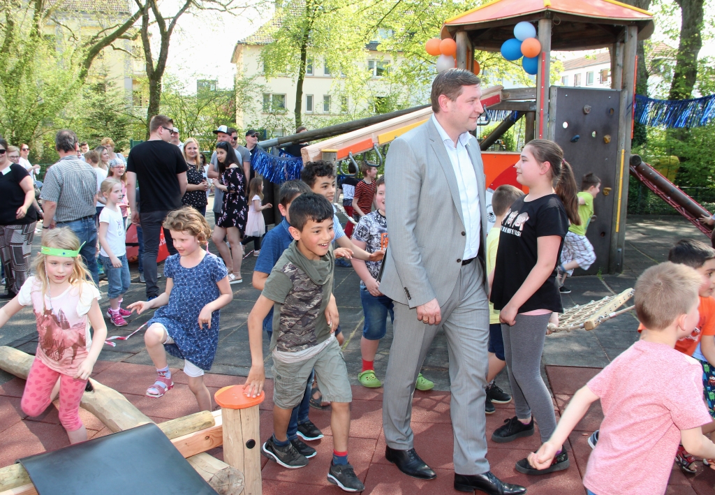 „Wenn wir diesen Spielplatz an die Kinder übergeben, dann ist es unsere Art Dankeschön zu sagen den Bürgerinnen und Bürgern, aber auch unseren Kunden, dass sie uns so lange die Treue gehalten haben“, machte Stefan Grunwald deutlich. Die Kosten für das Projekt belaufen sich auf rund 22.000 Euro, die komplett von der Sparkasse getragen wurden.