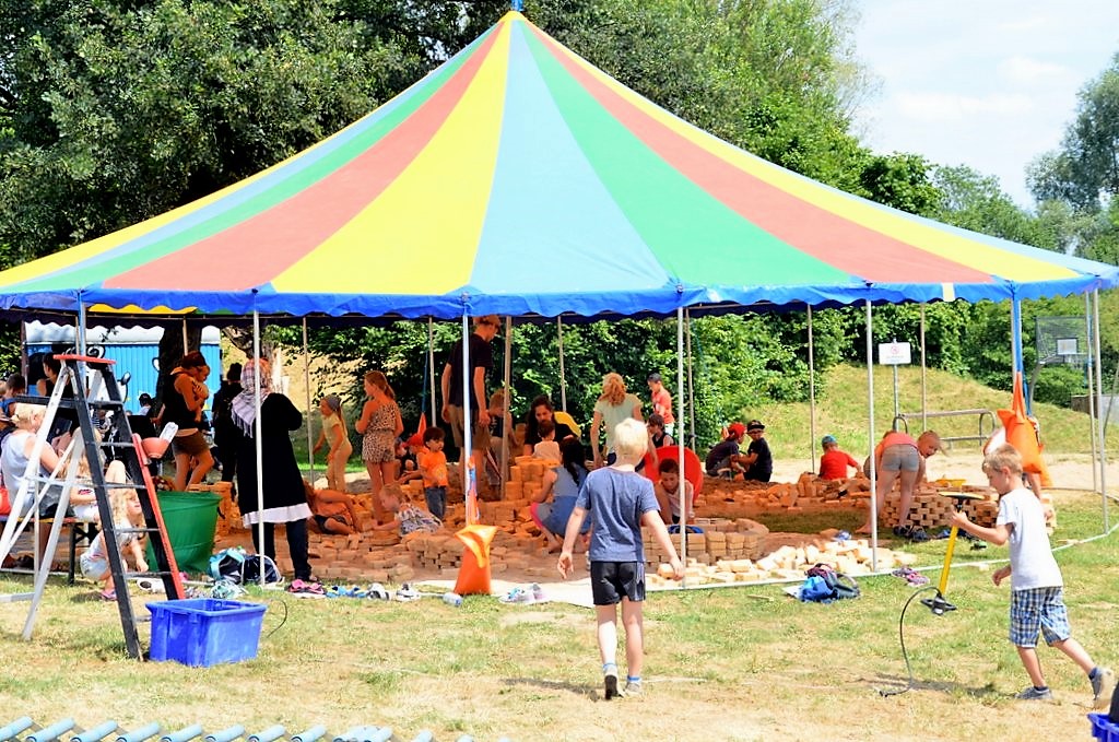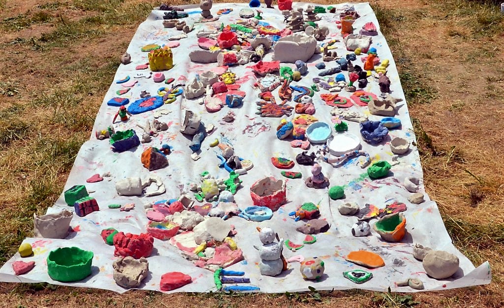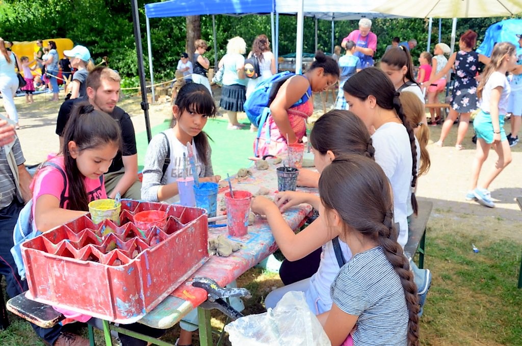 Beim Spielmobil entstehen die überaus beliebten Samenbomben, Kugeln aus Erde mit Blumensamen gefüllt. Die kann man an vielen Stellen aussetzen, natürlich auch im eigenen Garten. Für das kreative Gestalten gibt es an der Tonstation für jedes Kind ein großes Stück Ton. Daraus entstehen interessante Skulpturen, die nach dem Trocknen bemalt werden können. Auch hier ist seit Beginn an ununterbrochen Betriebsamkeit.