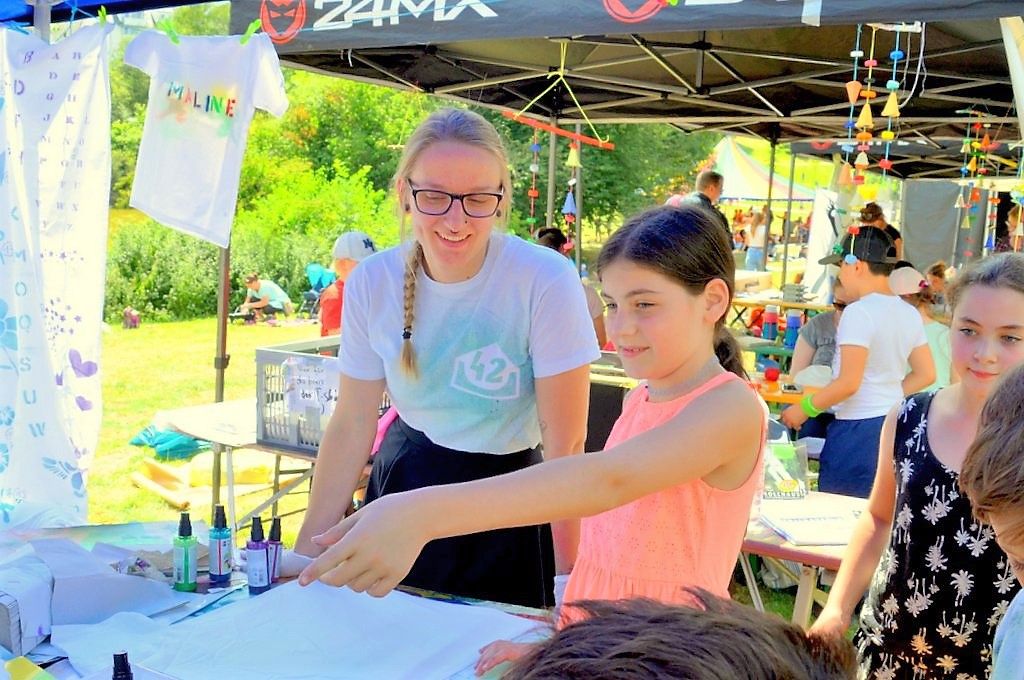 SOLINGEN (mh) – Halbzeit in der Bärenwoche. Die beiden Organisatorinnen Sinja Andrick-Bürger und Michelle Scheliga vom Spielmobil strahlen um die Wette. Schon am Mittwoch um die Mittagszeit ist abzusehen, dass die diesjährige Bärenwoche ein Riesenerfolg ist. „Man sieht die Freude in den Gesichtern“, lacht Scheliga. „Bei dem vielfältigen Angebot ist für jeden etwas dabei.“ Und Andrick-Bürger ergänzt: „Heute ist ja der Nachhaltigkeitstag. Da gibt es unsere Nachhaltigkeitsrallye. Die läuft so toll an. Überall auf dem Gelände sind Kinder mit ihrer Laufkarte unterwegs.“