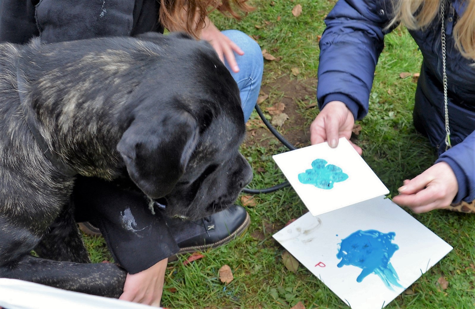 Am Stand von Karen Ulrich und Michael Boeck konnten Hundebesitzer Pfotenabdrücke ihrer Vierbeiner machen lassen. So manche Fellnase fragte sich, ob das mit der Farbe wirklich ernst gemeint war. (Foto: © Martina Hörle)