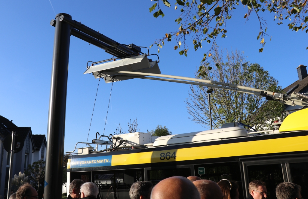 „Das ist gut angelegtes Geld, die Werbung dafür könnte allerdings noch etwas stärker sein, die allerdings nicht Bestandteil der Förderung ist“, lobte Cem Özdemir. Neben Solingen betreiben in Deutschland nur noch im brandenburgischen Eberswalde und im baden-württembergischen Esslingen Städte Oberleitungs-Systeme für Busse. „Dort wo Oberleitungen existieren, das sind derzeit diese drei Städte in Deutschland, ist das eine perfekte Erweiterung. Wir fördern sehr gerne dieses Vorhaben hier in Solingen, auch weil es hochinnovativ ist, weil Erneuerbare Energien eingebunden werden und weil es nicht zuletzt um eine Verknüpfung der Ladetechnologie vielleicht später auch für Pkws geht“, sagte Dr. Klaus Bonhoff vom Bundesverkehrsministerium.