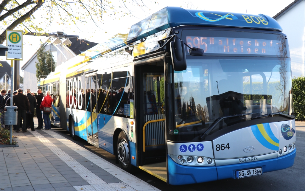 „Drei BOBs werden jetzt jeden Tag auf der Linie 695 eingesetzt, diese werden gut und gerne 210.000 Kilometer jährlich fahren und das rein elektrisch“, freute sich Conrad Troullier, Geschäftsführer des Verkehrsbetriebs der Stadtwerke Solingen. Angeschafft wurden zunächst vier der batteriebetriebenen Busse. Perspektivisch will man bis zum Jahr 2040 zu 100 Prozent elektromobil unterwegs sein. „Wir erhöhen jetzt die Elektromobilität von 65 auf 70 Prozent, weitergehen wird es dann in den nächsten fünf Jahren mit der Zielsetzung, die 80 Prozent zu erreichen“, zeigte Troullier auf.