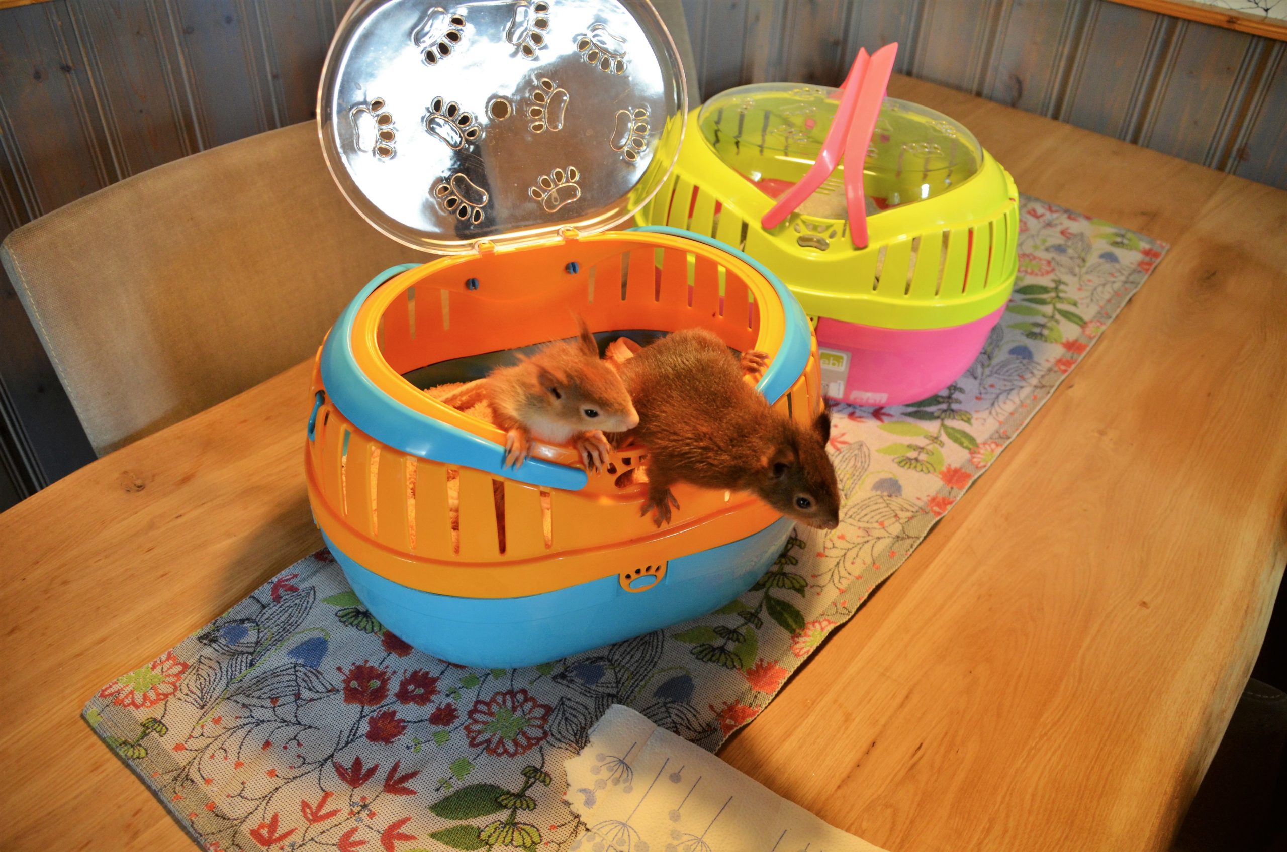 Die Kletterer, die momentan die große Gartenvoliere bevölkern, werden jetzt in die Freiheit entlassen. Das ist für die Mutter auf Zeit immer ein ganz besonderer Moment. Zwei Wochen lang bleibt die Voliere noch geöffnet, für den Fall, dass der eine oder andere Wintergast zurückkommt. Dann ziehen die nächsten Bewohner, die schon kräftig genug sind, dort ein. Mit ihren Ohrpuscheln und den buschigen Schwänzen sehen die kleinen Nager zwar ganz zauberhaft aus, sind aber trotzdem keine Kuscheltiere, die man zum Vergnügen in der Wohnung oder gar im Käfig halten kann. Es sind Wildtiere, die nach dem Tierschutzgesetz nur so lange zur Pflege aufgenommen werden dürfen, bis sie wieder selbstständig in Freiheit leben können.