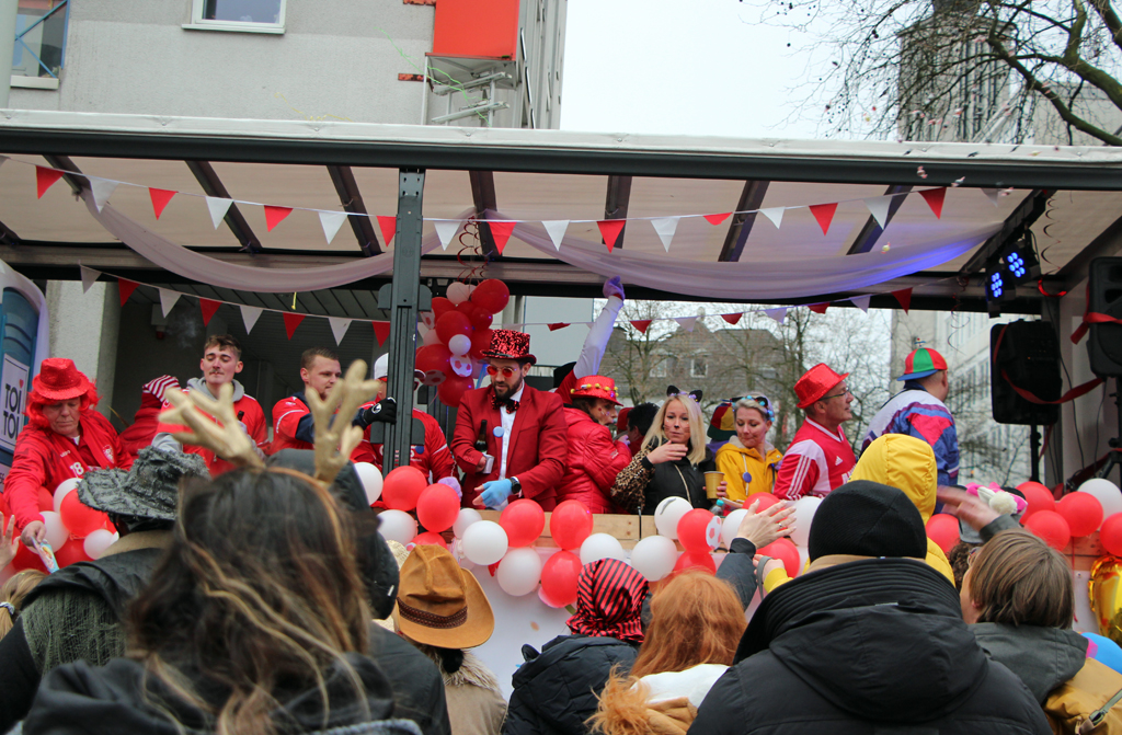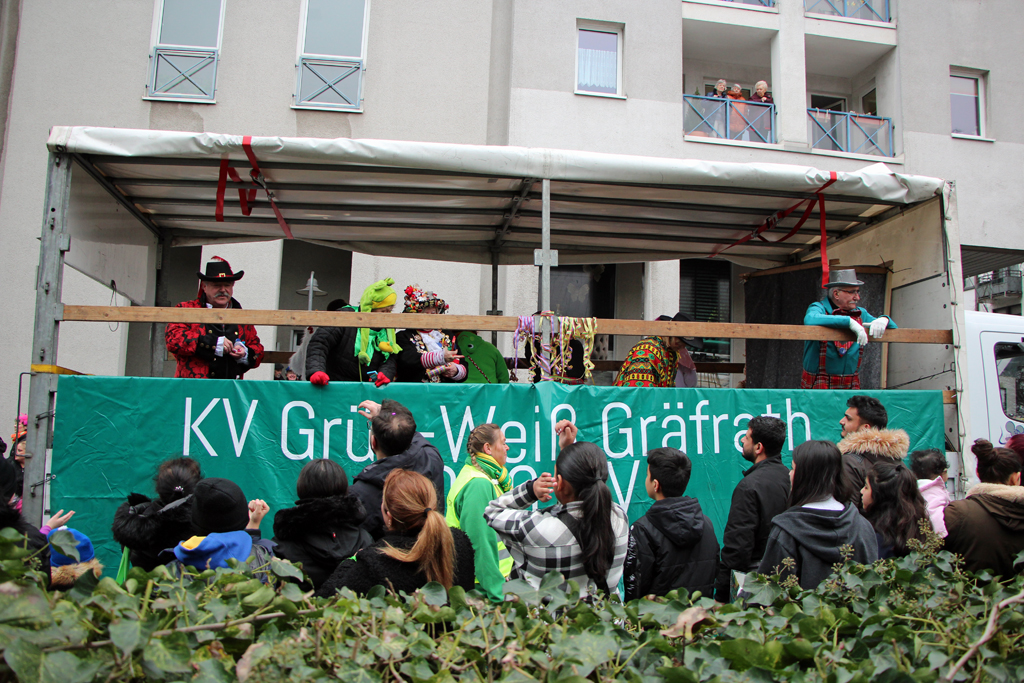 Jeder Wagen wurde mit dem Ruf „Kamelle! Kamelle!“ begrüßt und die Karnevalsvereine ließen sich in diesem Jahr nicht lange bitten. Mit vollen Händen warfen sie die begehrten Süßigkeiten ins Publikum. Doch nicht nur die typischen Kamelle flogen, sondern auch Popcorn-Tütchen und sogar Taschentuch-Päckchen. Viele Besucher dürften für die nächste Zeit ihren Bedarf an Süßigkeiten während des Rosenmontagszugs gedeckt haben.