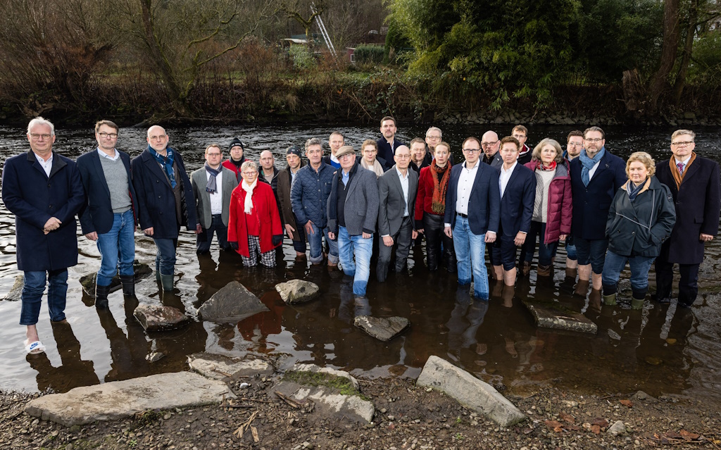 SOLINGEN (red) – Das Wasser steht ihnen noch nicht bis zum Hals, doch die Pegel steigen: Mehr als 20 Unternehmerinnen und Unternehmer aus Wuppertal, Solingen und Remscheid haben am 22. Dezember ein deutliches Zeichen gesetzt. Sie stellten sich gemeinsam in die Wupper, um symbolisch auf die dramatische Lage der Industrie in der Region und in ganz Deutschland hinzuweisen. Begleitend präsentierten sie ein entsprechendes Forderungspapier.
