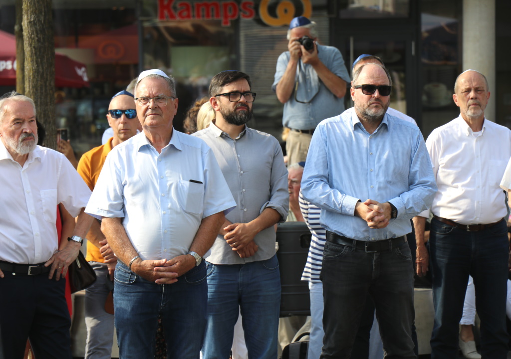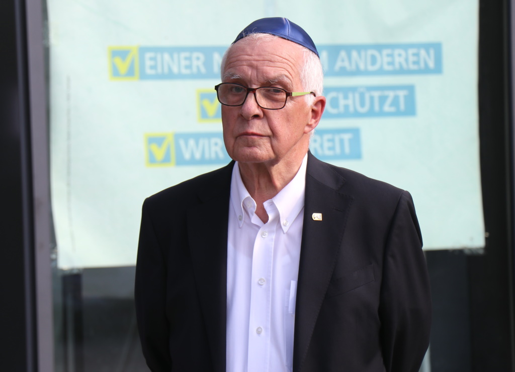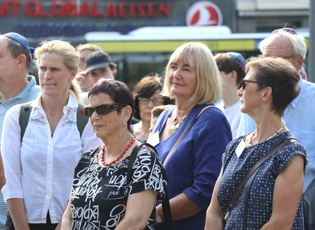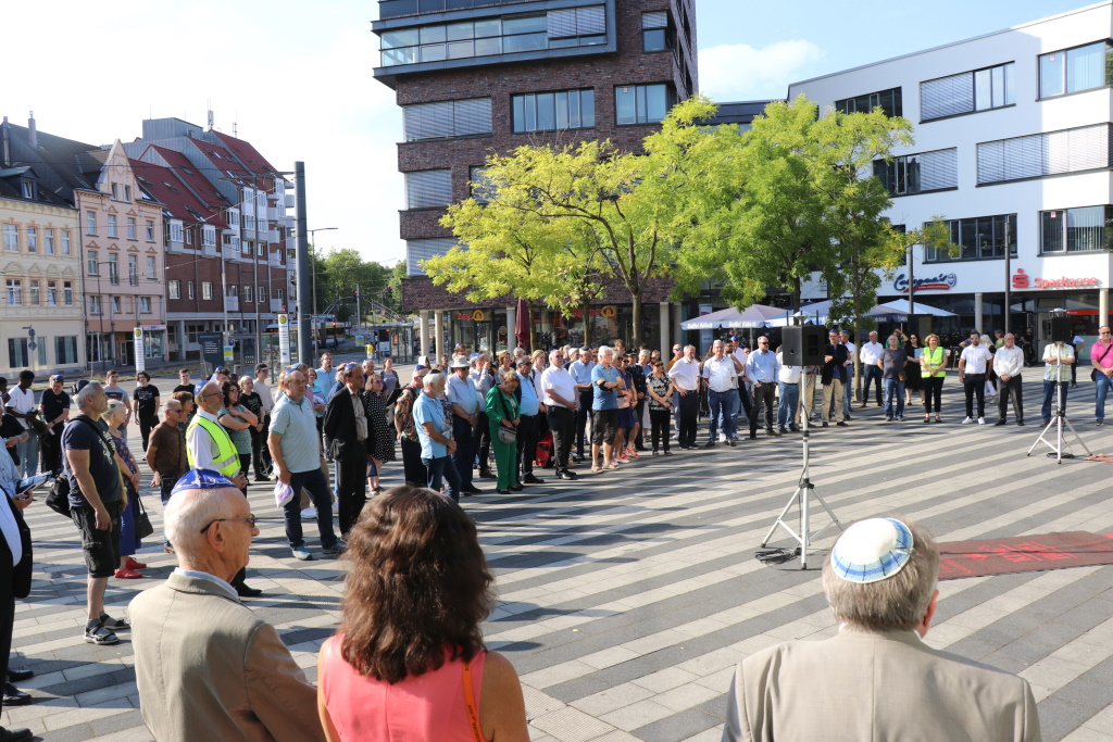 „Wir wollen und werden niemals kapitulieren vor wachsendem Antisemitismus, vor Rassismus, Intoleranz, Homophobie und Fremdenfeindlichkeit. Wir stehen für ein Solingen, das bunt ist und tolerant“, betonte Oberbürgermeister Tim Kurzbach in seiner Ansprache. Anlässlich der fünften Auflage des Kippa-Tages waren wieder alle männlichen Teilnehmer der Veranstaltung dazu aufgerufen, eine Kippa zu tragen – um auch auf diese Weise Solidarität mit jüdischen Menschen in Solingen zu zeigen. Die Kippa ist die traditionelle Kopfbedeckung religiöser Männer jüdischen Glaubens. Vor dem Rathaus wehte die Flagge des Staates Israel.