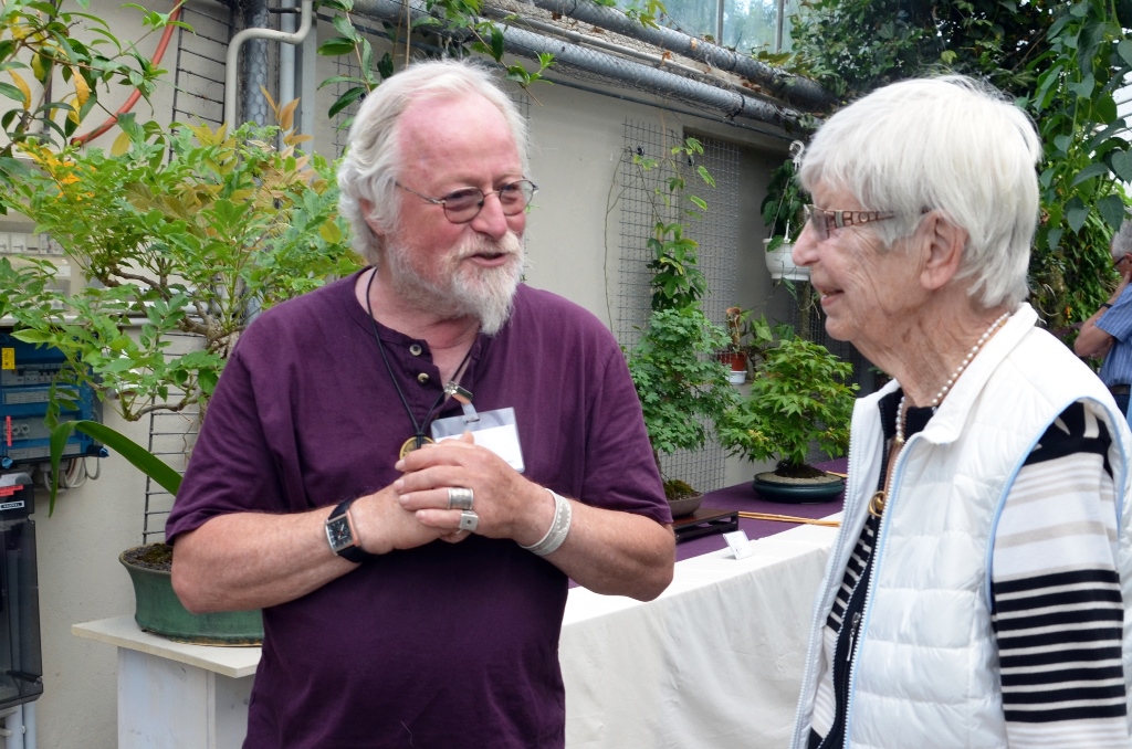 Michael Luther (li.) und Ernst Theis stehen gerne für Fragen zur Verfügung. Beide sind seit vielen Jahren Mitglieder im Bonsai-Arbeitskreis Solingen. (Foto: © Martina Hörle)