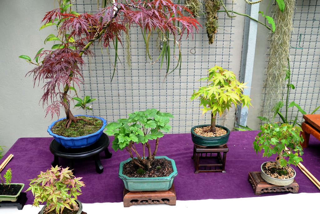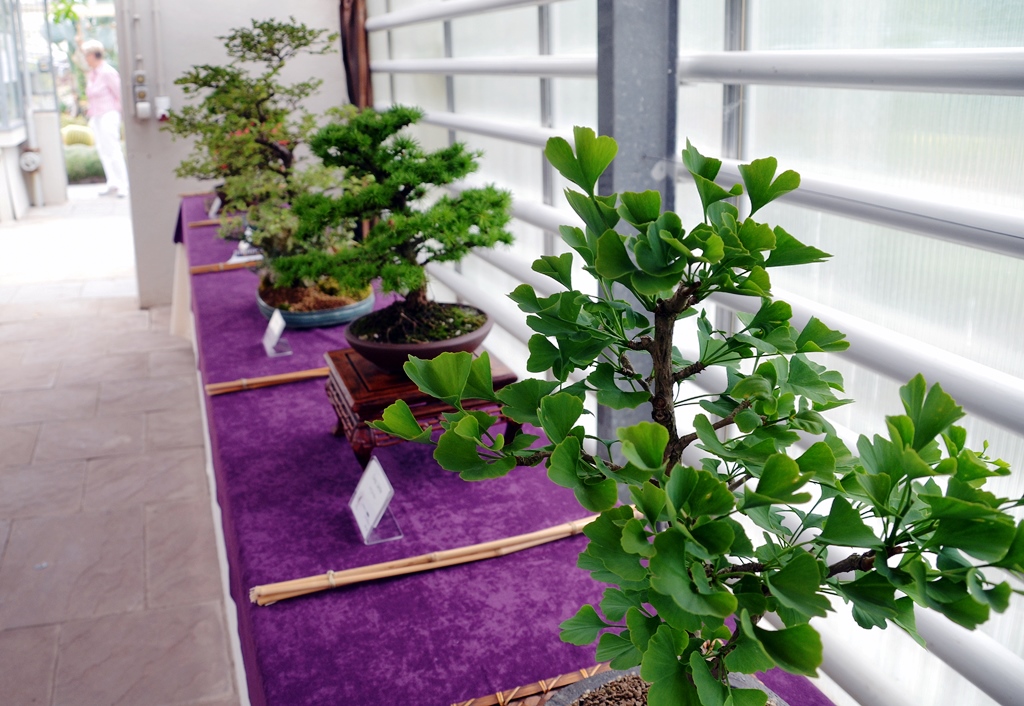 Die Bonsai-Ausstellung steht dieses Jahr ganz im Zeichen des Ahorns. Diese Baumart ist aufgrund ihrer Blattfärbung sehr beliebt. Zwanzig verschiedene Arten sind in der Orchideenhalle zu besichtigen. (Foto: © Martina Hörle)
