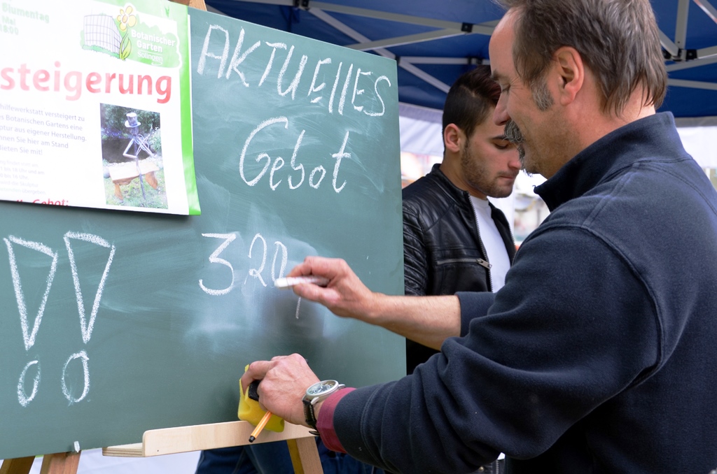 Ein Highlight war die Versteigerung einer Metallskulptur, die die Jugendhilfewerkstatt Solingen extra zu diesem Zweck angefertigt hatte. Besucher des Botanischen Gartens kennen bereits die zahlreichen Skulpturen, die über den Park verteilt zu finden sind. Originell, liebenswert und skurril erfreuen sie das Auge.