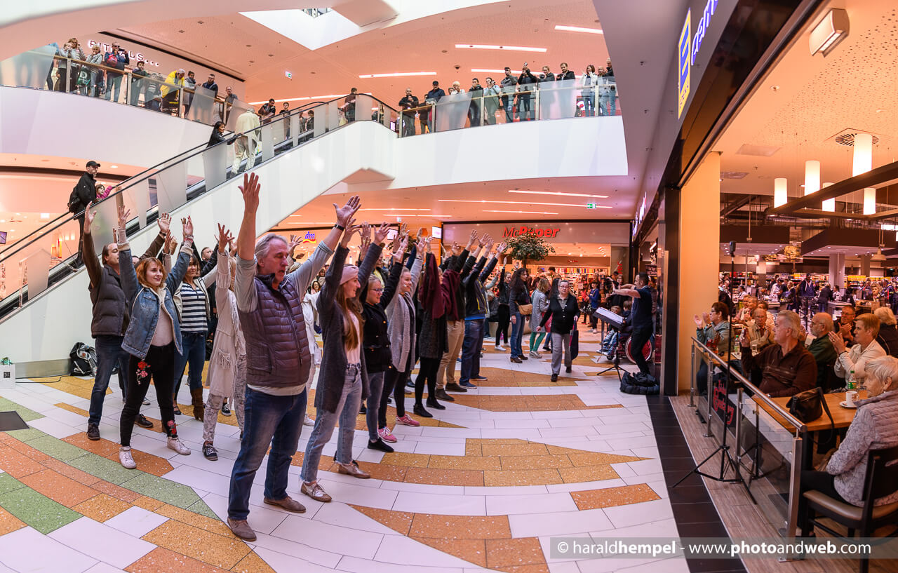 Bereits am vergangenen Samstag hatte man mit einem zehnminütigen Flashmob im Hofgarten auf das Musical hingewiesen. „Es war ein voller Erfolg.“ Begeistert berichtet White, dass in knapp 20 Minuten alle 600 Flyer vergriffen waren. „Die Story ist sehr bekannt. Eine tolle Comedy mit Kult-Charakteren.“