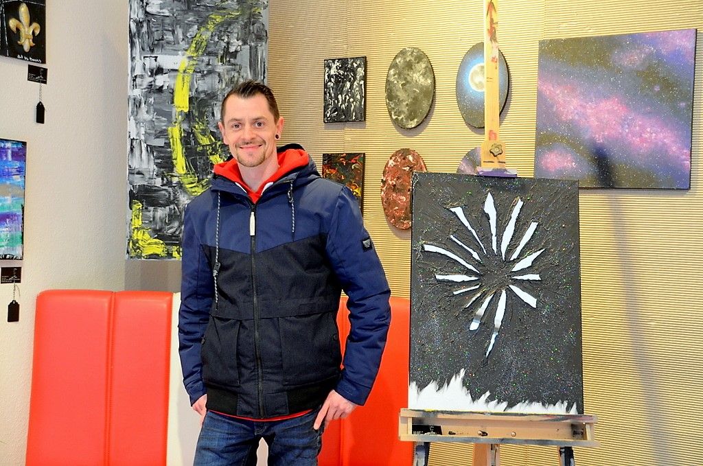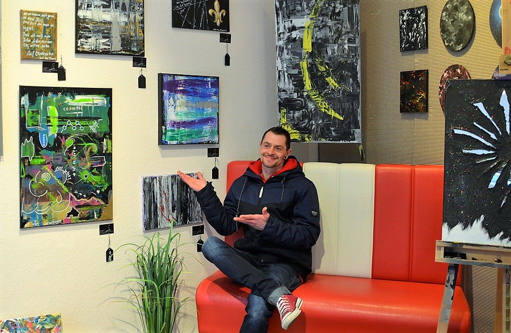 in der city art Galerie „E 15“ stellt ebenfalls ein Künstlertrio seine vielseitigen Arbeiten aus. Danny Gambuto sucht seine Motive eher im Bereich des Abstrakten. Er experimentiert gerne mit unterschiedlichen Linienführungen und Farbmischungen. „Meine Bilder sind teils sehr dunkel, dann aber auch wieder farbenfroh“, erklärt er. Gerade in der Findungsphase ist Gambuto sehr froh, sich mit den anderen Künstlern austauschen zu können. „Hier in den Galerien ist wirklich eine tolle Gemeinschaft.“ Er freut sich darauf, seine kreative Ader ausleben zu können. „Kunst schaffen ist Kunst lieben. Kunst leben macht unsere Welt ein bisschen bunter… Wer Kunst liebt, lebt bunter …“ Genau das zeigt er in seinen Werken.