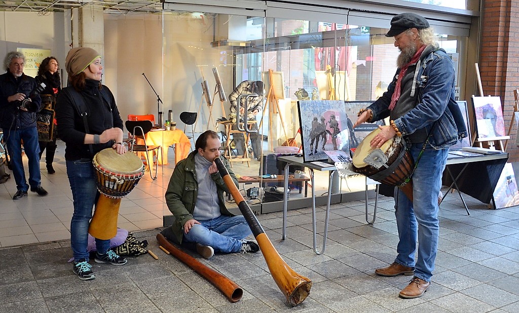 Kristina Eckel bemalt Kalenderbücher und Kladden, auch nach besonderen Wunschmotiven. Mittels Fototransfer überträgt sie eigene Motive auf Untersetzer. Das Trio Samamack veranstaltet gemeinsam mit Zoran Velinov sowie Gloria und Frank Göllmann eine besondere Performance. Didgeridoo, Percussion, Gitarre und Elektronik vereinigen sich zu einzigartigem Klang.