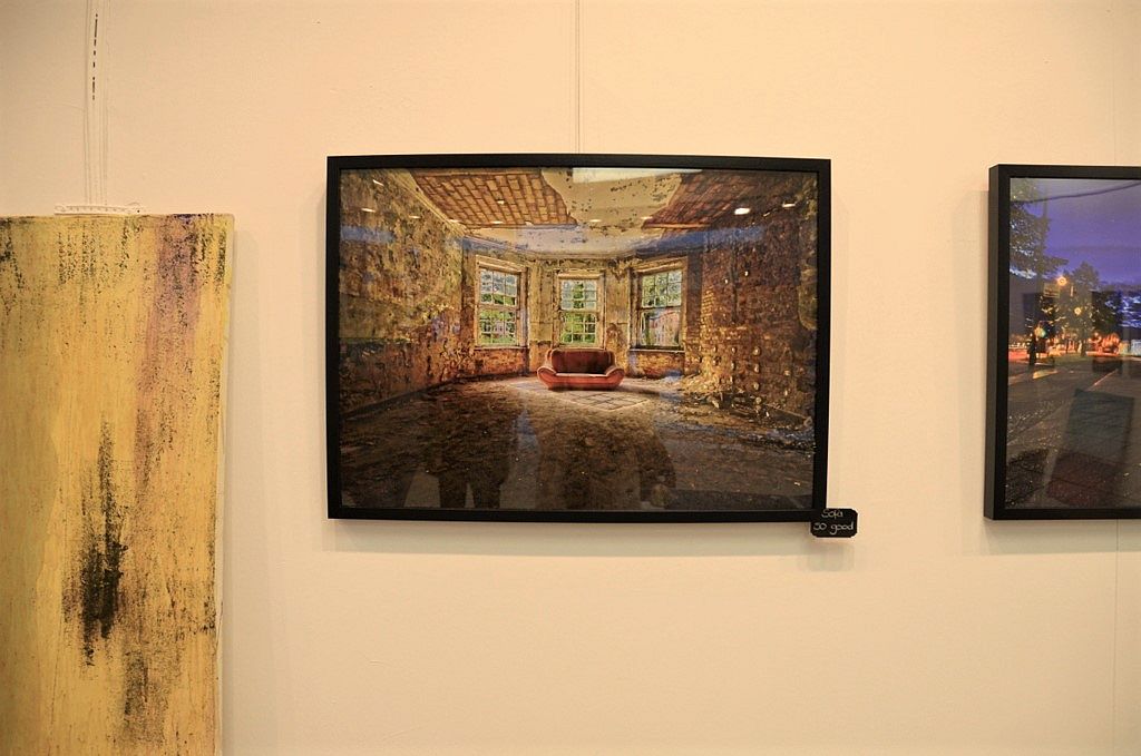 Bilder ganz anderer Art hat Evelyn Bialobrzeski mitgebracht. Ihre Werke hängen gemeinsam mit den Kunstwerken von Peter Wischnewski in der city art Galerie E 6. „Es ist meine erste Ausstellung“, strahlt die junge Lehrerin. „Bisher hatte ich meine Fotos immer nur privat auf Facebook gezeigt.“ Hier hatte Künstler Wischnewski einige der Fotos gesehen und sofort Kontakt zu der Fotografin aufgenommen. Ein Bild hatte es ihm besonders angetan. In einem baufälligen Zimmer steht ein rotes Sofa. Der Blick aus dem Fenster zeigt eine grüne Umgebung. „Mich hat die Zusammenstellung der Farben fasziniert“, beschreibt er seinen Eindruck. „Es ist eine tolle Kombination, eine ganz besondere Perspektive.“ Jetzt hängen in der Galerie neun Bilder der Künstlerin.