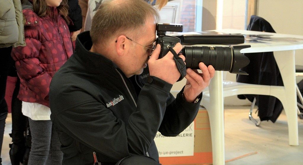Nach den Darbietungen geht es zum Fotoshooting. In der Galerie ROLANDS^ECK steht Frank Reimann schon mit der Kamera bereit. Manch kleine Künstler posieren, als hätten sie nie etwas anderes getan, zeigen bereitwillig ihre Tanzfiguren. Bei anderen ist etwas Überredungskunst angesagt.